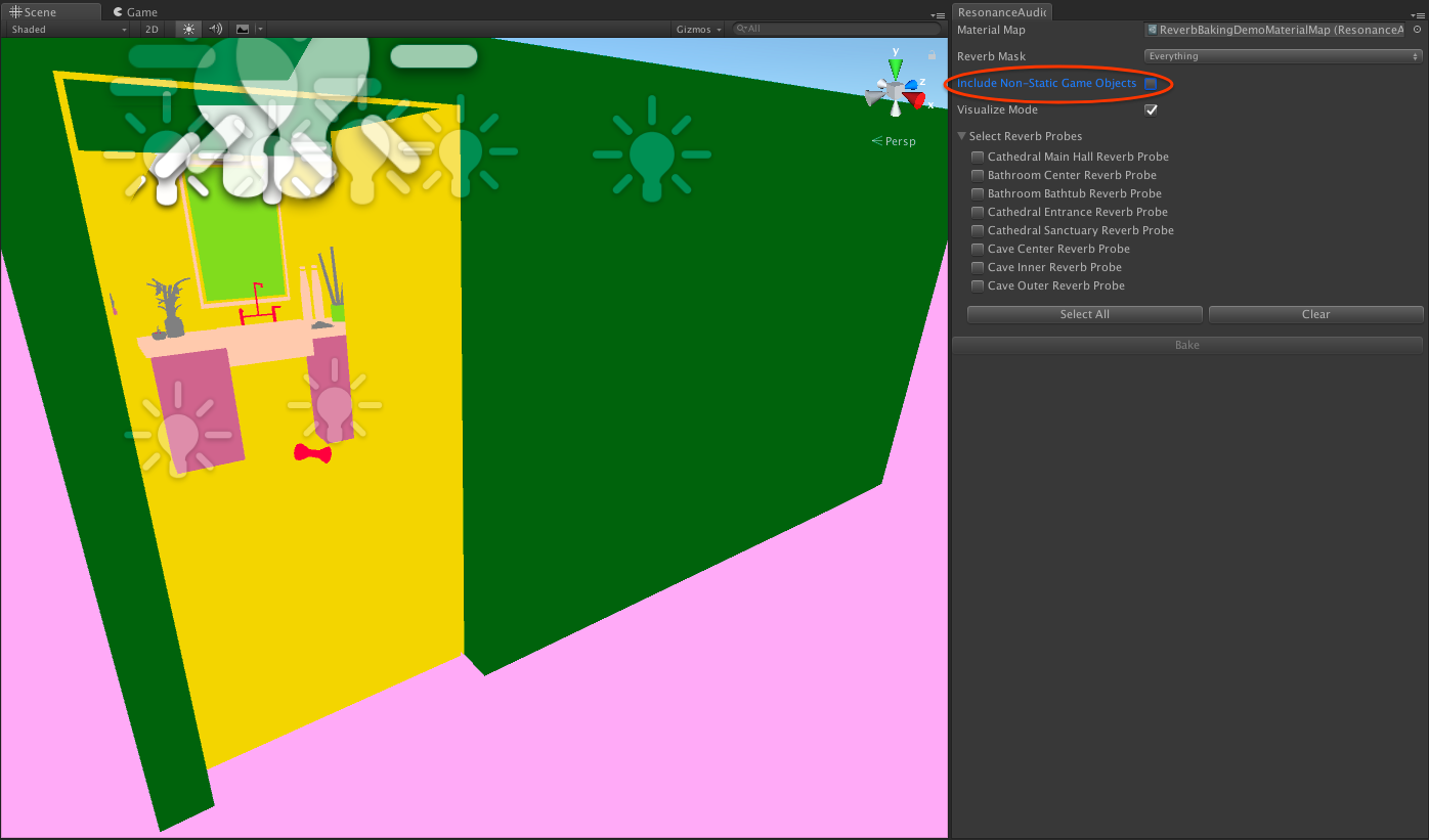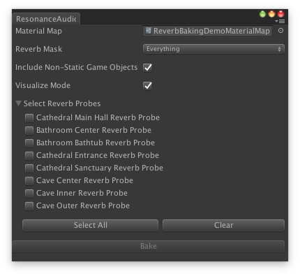 - Use Resonance Audio reverb baking tools