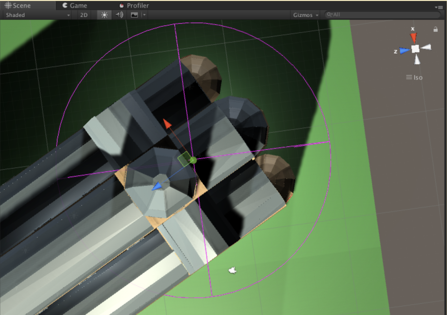 The corresponding magenta-colored wireframe appears in the scene view. -